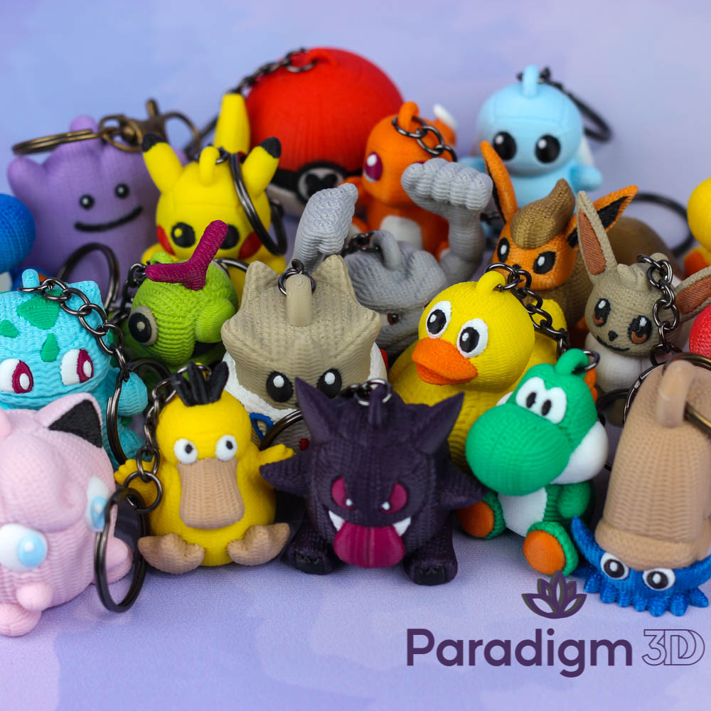 Wide selection of keychains to choose from. All one piece multicolored print. Knitted design from Hex3D.